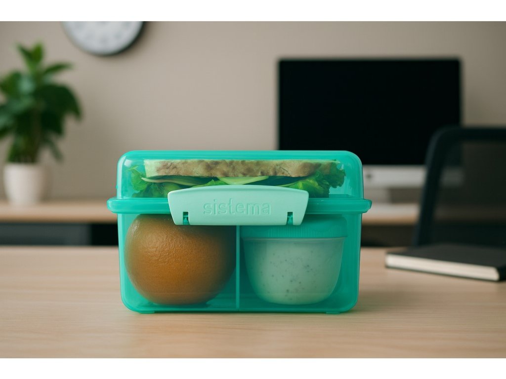 Vďaka inovatívnemu dizajnu s tromi komorami, odnímateľnými táckami a 150ml kelímkom na jogurt, táto krabička umožňuje udržať jedlo oddelené a čerstvé až do doby konzumácie. Výhody: • Ideálne pre deti • Tri komory • 150ml kelímok na jogurt • Odklápacie vekoDodatočné parametre