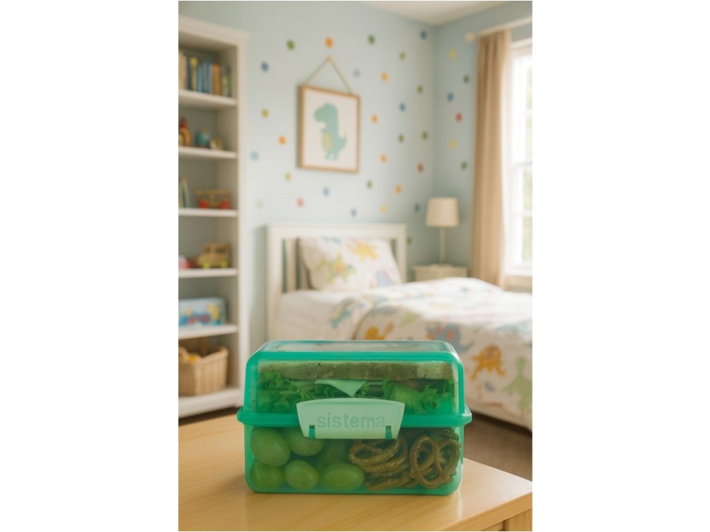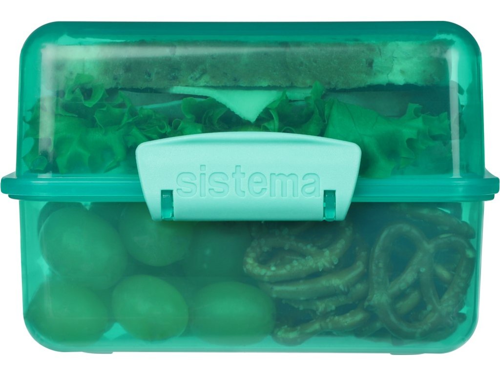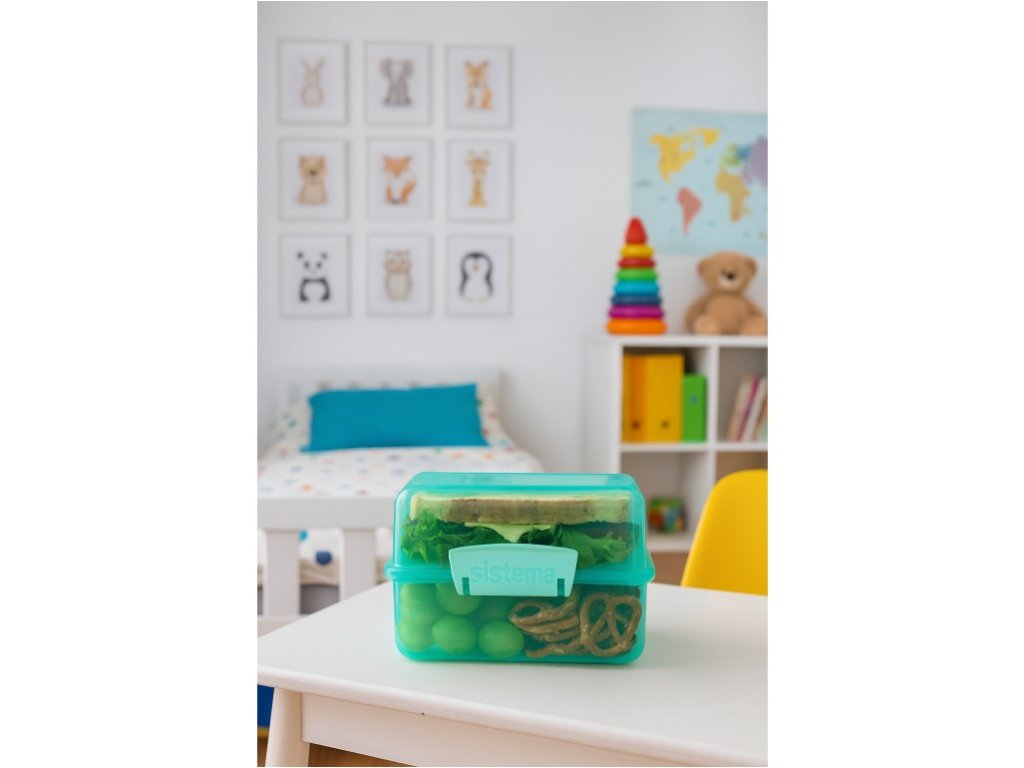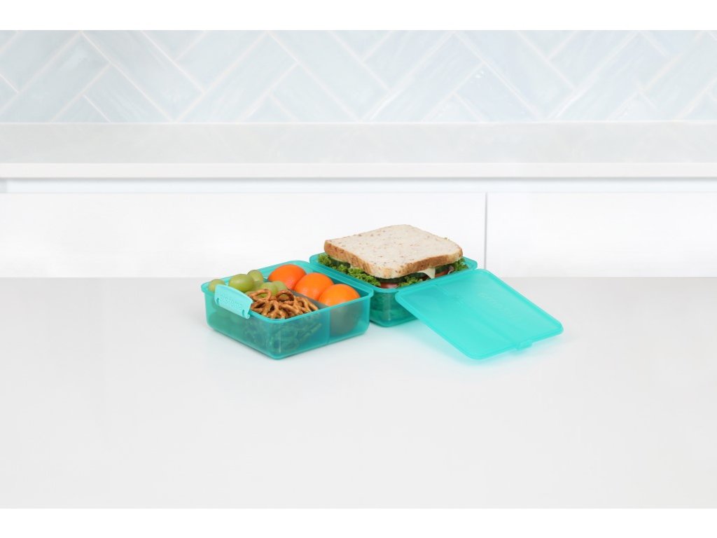 Krabička sa skladá z dvoch poschodí, ktorá ponúka dostatok priestoru na pestrý a vyvážený obed. Veľká priehradka je ideálna na uloženie sendviča, zatiaľ čo menšie priehradky sa skvele hodia na ovocie, zeleninu, orechy alebo iné drobné pochutiny. Výhody: • Ideálne pre deti • Jednoduché uzamykanie: Klip Sistema® • Priestranná a praktickáDodatočné parametre