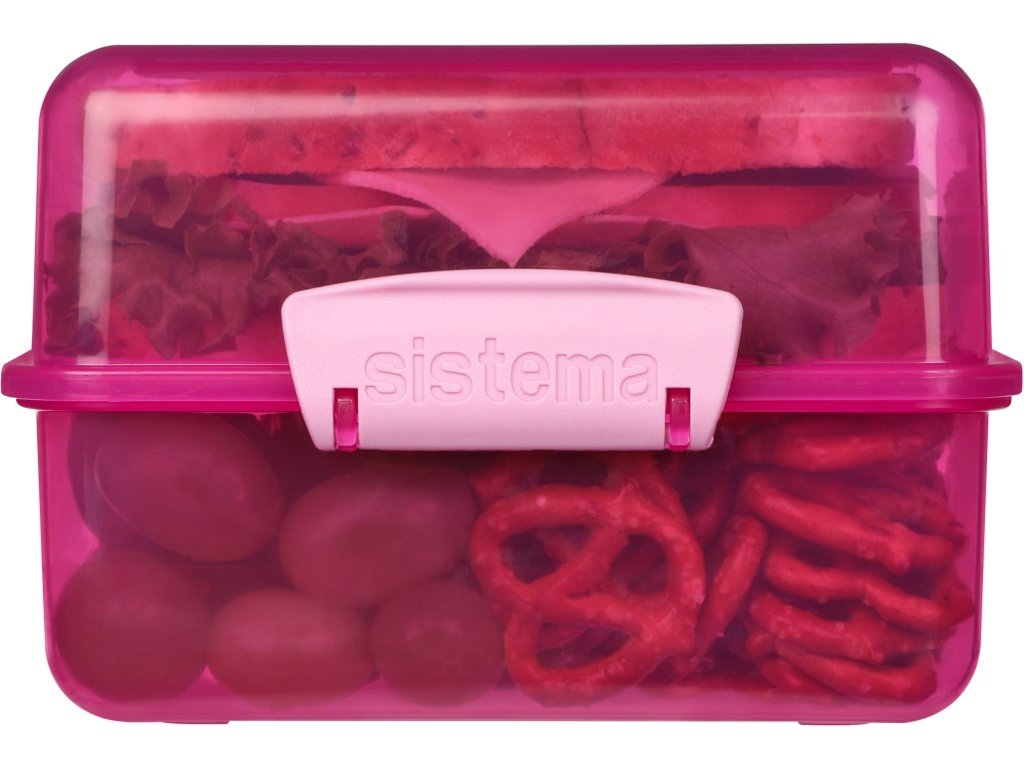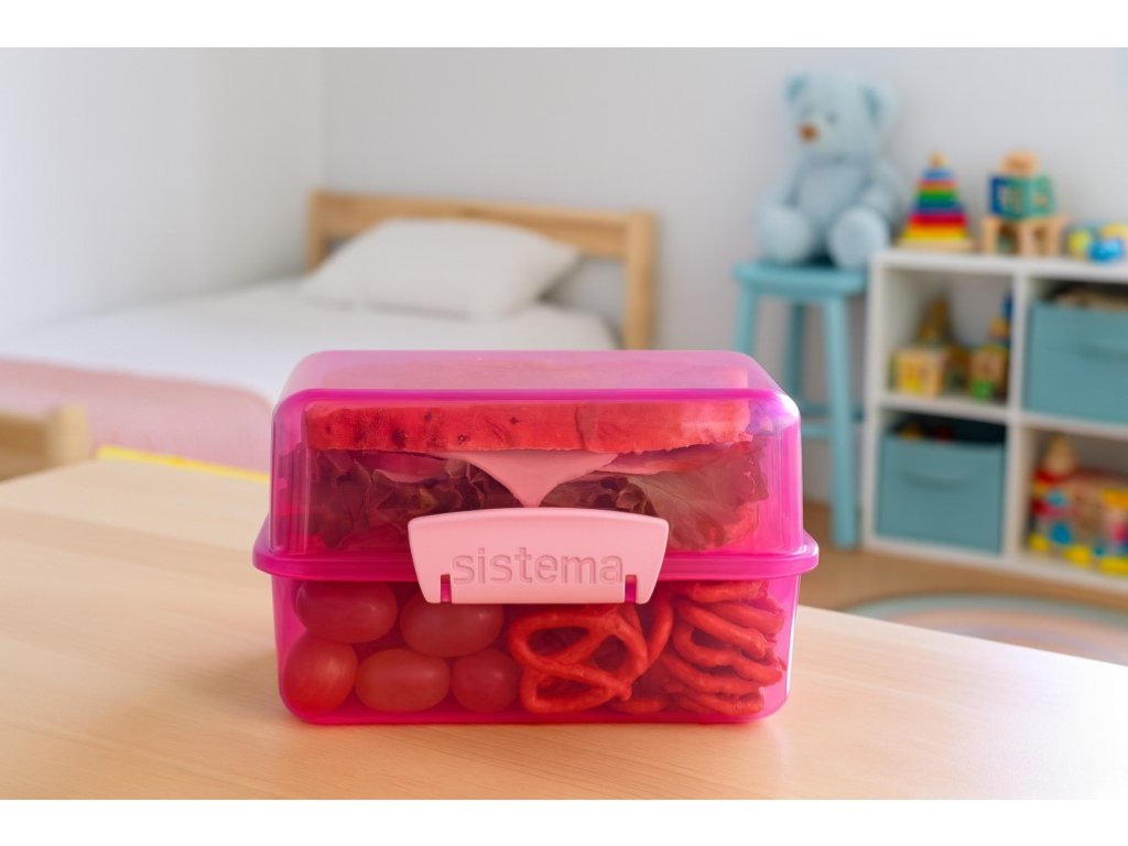 Krabička sa skladá z dvoch poschodí, ktorá ponúka dostatok priestoru na pestrý a vyvážený obed. Veľká priehradka je ideálna na uloženie sendviča, zatiaľ čo menšie priehradky sa skvele hodia na ovocie, zeleninu, orechy alebo iné drobné pochutiny. Výhody: • Ideálne pre deti • Jednoduché uzamykanie: Klip Sistema® • Priestranná a praktickáDodatočné parametre