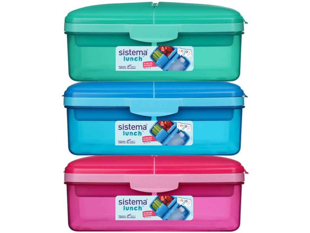 Sistema Delený desiatový box Lunch Quaddie 1,5 l s 3 výklopnými priehradkami vo veku as fľašou na pitie, mix farieb