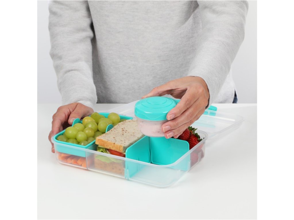 Krabička je ideálna do práce, školy alebo parku a pomáha obmedziť používanie plastových vrecúšok. Krabička má 3 komory, ktorej prepážky v sú pohyblivé, takže si ich môžete prispôsobiť svojim potrebám. Súčasťou balenia je aj malá nádoba na jogurt, ktorá je ideálna na prenášanie müsli, ovocia alebo orechov. Výhody: Poskytuje priestor pre rôzne druhy jedla Pohyblivé prepážky Nádoba na jogurt 130ml Mini Bite™Dodatočné parametre