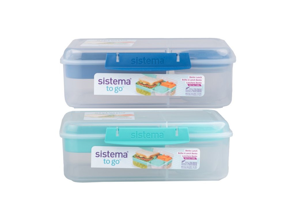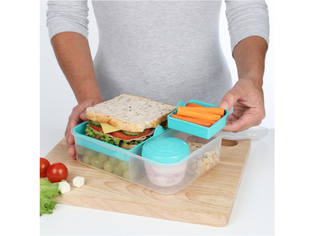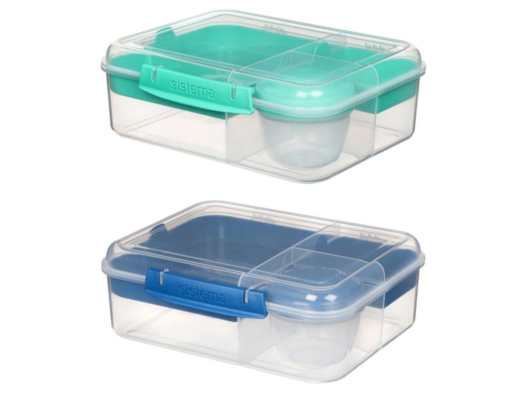 Sistema Delený desiatový box To Go Bento Lunch s nádobou na jogurt a 2 tácky 1,65 l, mix farieb