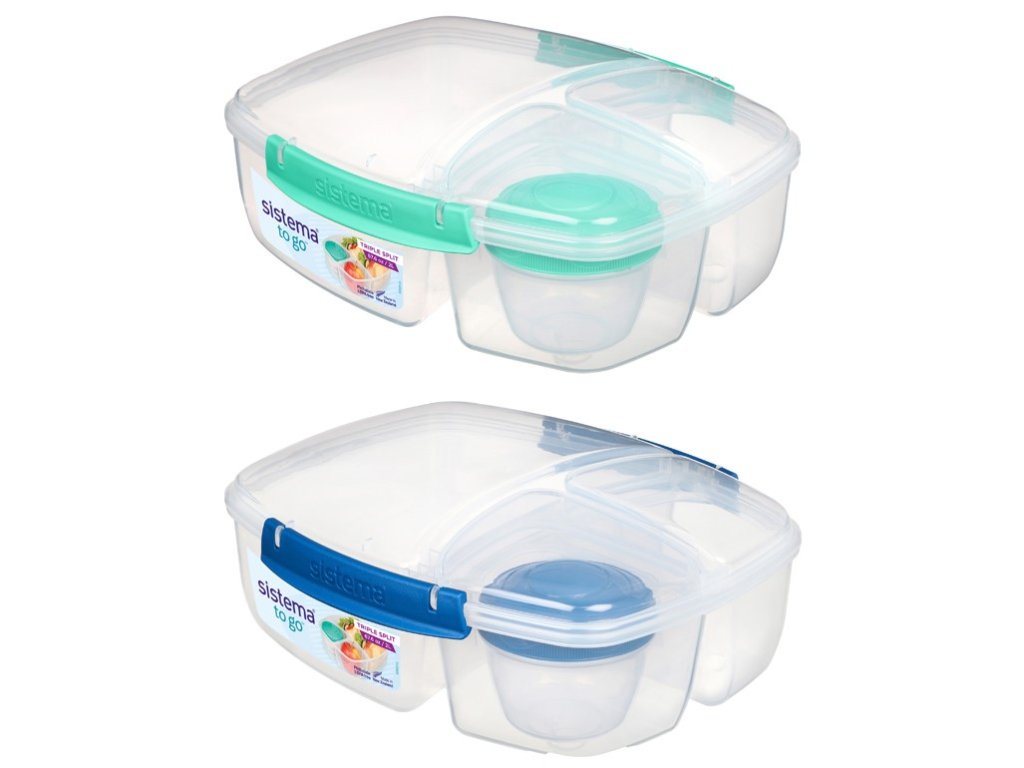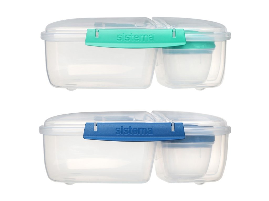 Táto krabička vám pomôže obmedziť používanie plastových vrecúšok a potravinových fólií a zároveň vám zaistí, že vaše jedlo bude čerstvé a chutné. Krabička je rozdelená do troch komôr, takže si môžete vziať so sebou rôzne druhy jedla bez rizika, že sa zmiešajú. Výhody: Má 3 komory (1 veľká a 2 malé) Nádoba na jogurt 150 ml Jednoduché uzamykanie: Klip Sistema®Dodatočné parametre