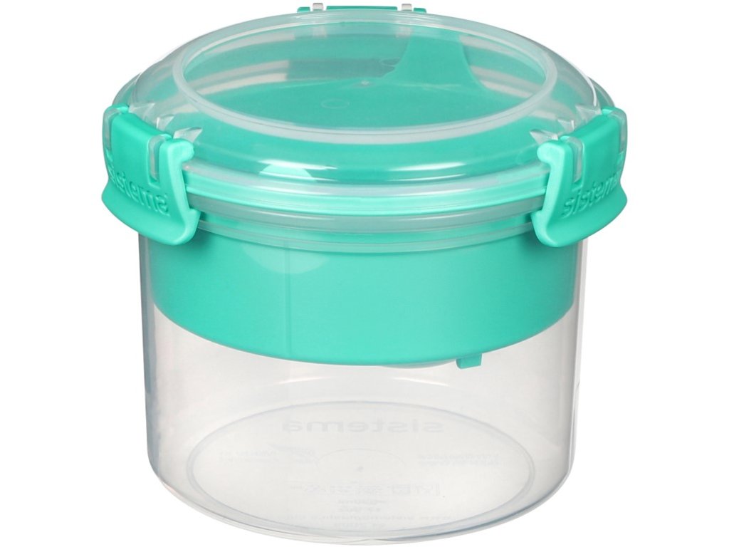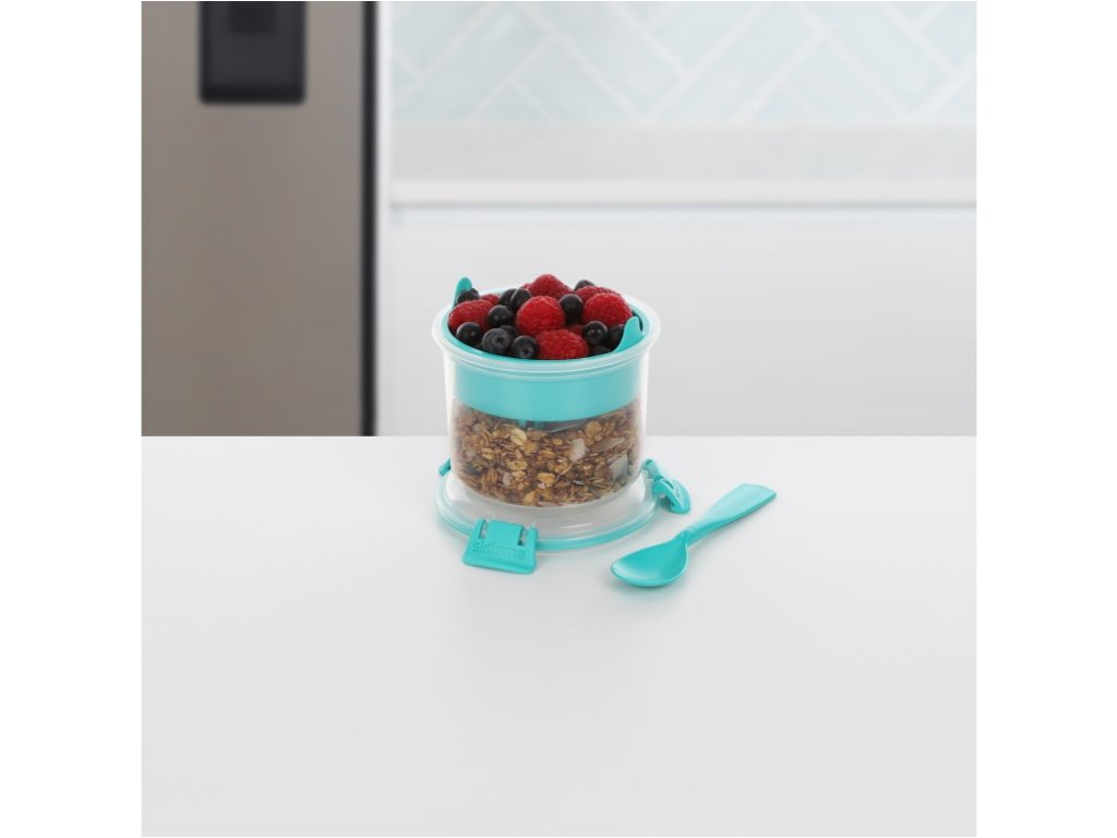 Sistema TO GO 530 ml s vnútornou oddelenou miskou a lyžičkou je šikovný a praktický pomocník pre všetkých, ktorí si chcú vziať zdravé raňajky alebo desiatu do práce, do školy alebo na výlety. Praktický tvar umožňuje ukladať oddelene rôzne druhy potravín a premiešať ich tesne pred konzumáciou. V spodnej časti môžete uložiť napríklad jogurt, v hornú akúkoľvek vhodnú prísadu (müsli, ovocie, sušené plody alebo cereálie). Vďaka priloženej lyžičke môžete svoje obľúbené pochúťky konzumovať kdekoľvek. Stohovateľný tvar zaisťuje maximálne využitie priestoru v špajze, chladničke a mrazničke. Výhody: • Lyžička súčastí • Dve oddelené priehradky • Odolný plastDodatočné parametre