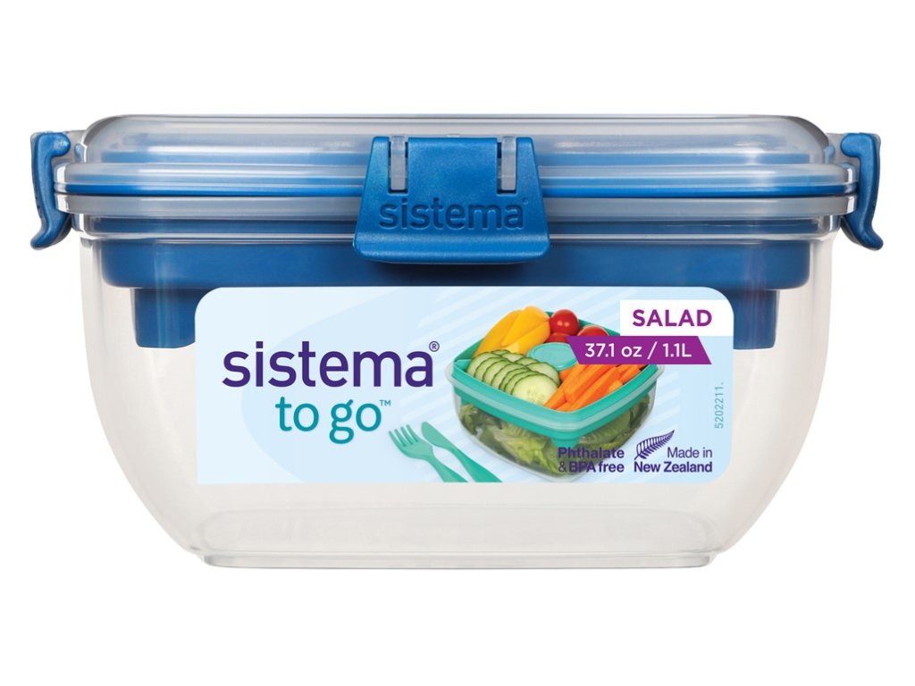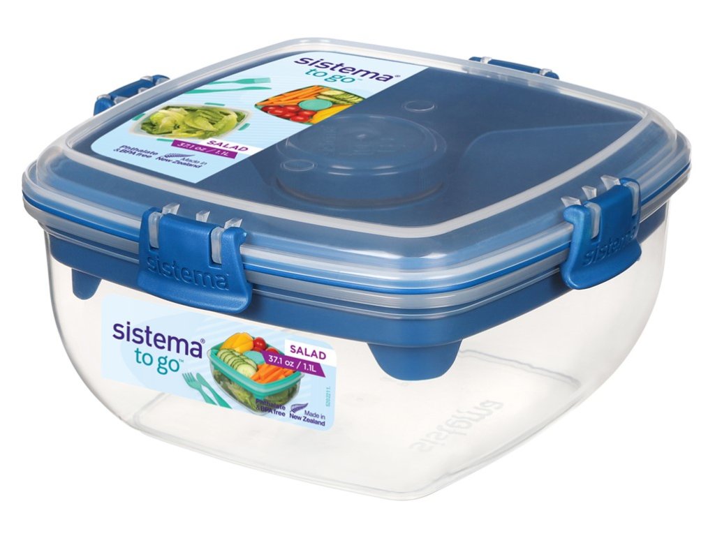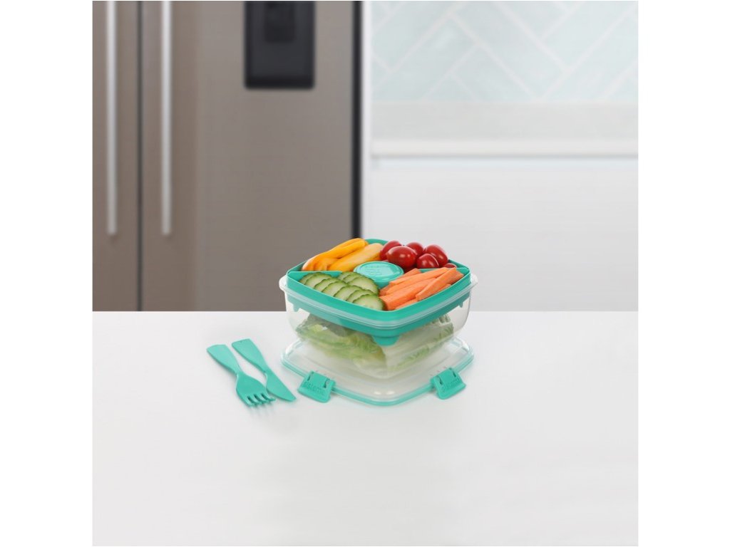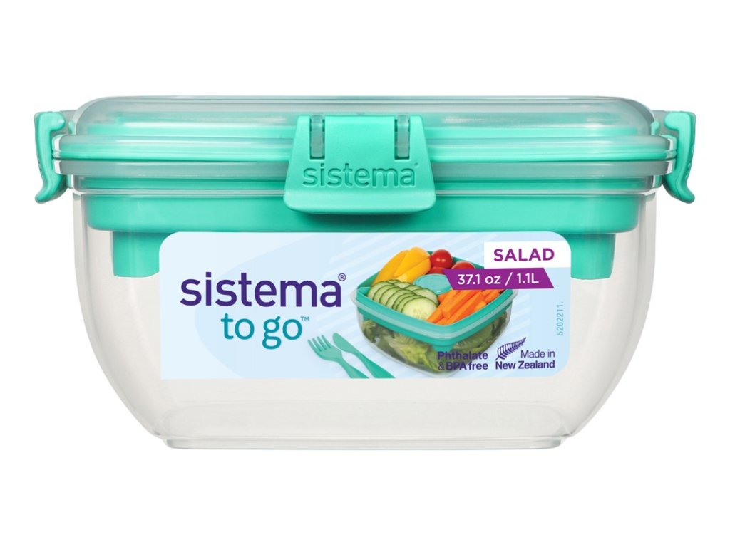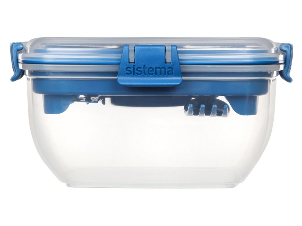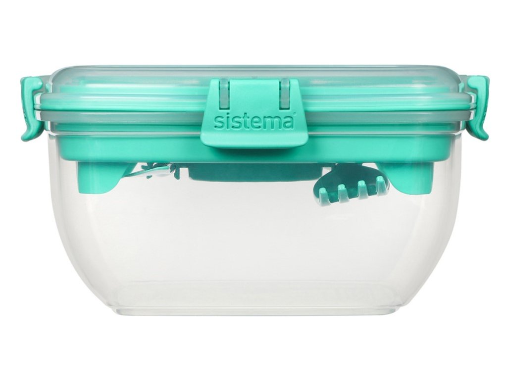 Sistema Salad TO GO™ je ideálna krabička na šaláty pre tých, ktorí si chcú vychutnať čerstvý a chutný šalát nielen na cestách. Vďaka oddeleným priehradkám a nádobe na dresing udržíte ingrediencie oddelené až do doby konzumácie. Praktická vidlička a nôž sa zasúvajú do veka, takže so sebou nemusíte nosiť žiadne ďalšie príbory. Výhody: Oddelené priehradky na zeleninu a ďalšie ingrediencie Nádoba na dresing Príbor ktorý sa pripína do veka Jednoduché uzamykanie: Klip Sistema® a pružné tesnenieDodatočné parametre