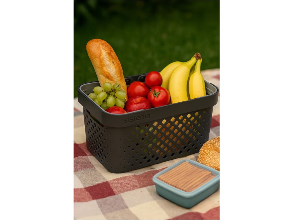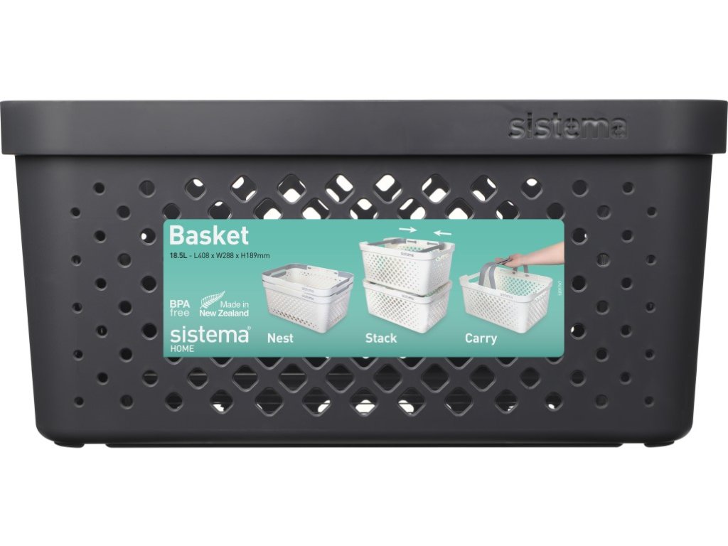 Viacúčelový košík Sistema Basket 18,5 litra je navrhnutý pre maximálnu funkčnosť a moderný vzhľad. Tento kôš v atraktívnej šedej farbe je vyrobený z odolného a ľahkého plastu, čo zaručuje jeho dlhú životnosť a jednoduchú manipuláciu. Vďaka perforovanému designu je ľahký a priedušný, ideálny pre organizáciu domácnosti, prevoz nákupu alebo skladovania. Disponuje ergonomickými úchytmi na jednoduché prenášanie a je stohovateľný pre úsporu miesta.Dodatočné parametre
