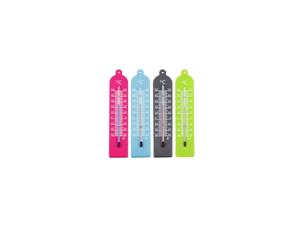 Klasický izbový teplomer, rozmery 177 × 34 mm, plastový, rôzne farebné prevedenie. Farba na obrázku je iba ilustratívna, v ponuke viacerých farebných variantov, dodávame podľa skladovej dostupnosti.Dodatočné parametre