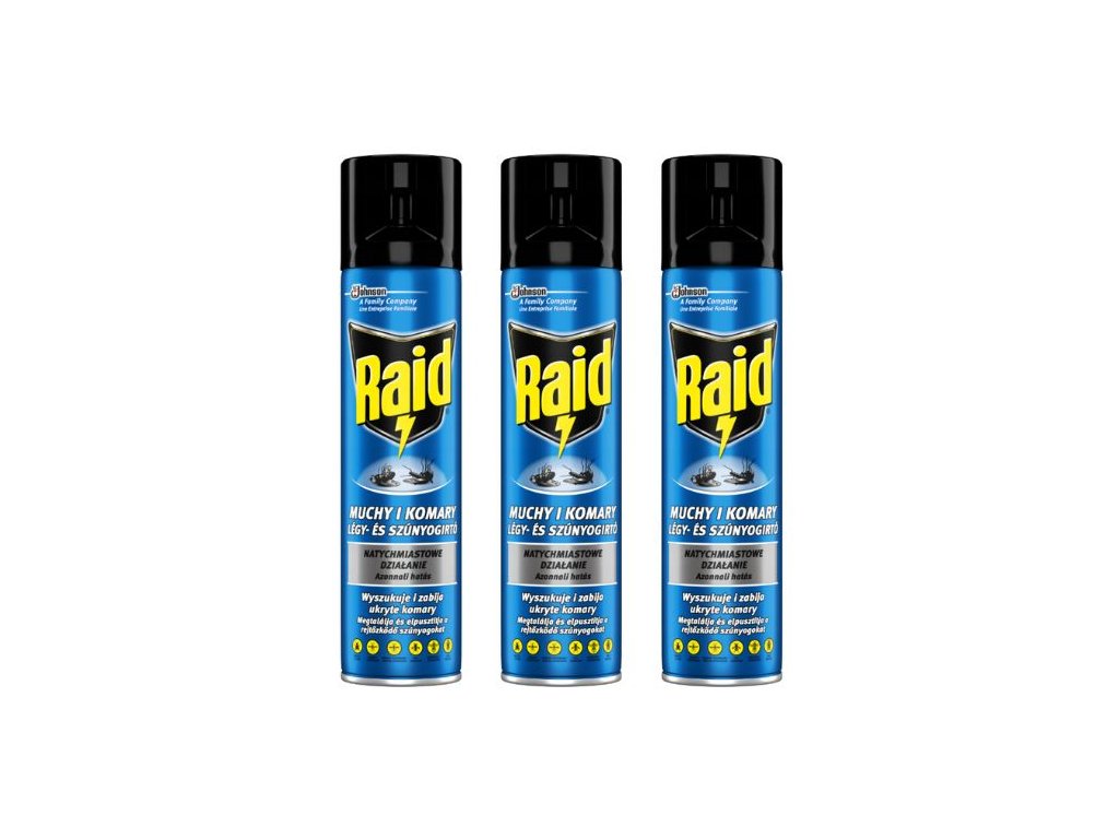 Raid aerosól proti lietajúcemu hmyzu je účinný insekticídny sprej určený na rýchle ničenie komárov, múch, ôs, sršní, molí a ďalšieho ťažkého hmyzu. Vďaka špeciálnemu zloženiu pôsobí okamžite po aplikácii a je možné ho použiť ako v interiéri, tak aj vonku.