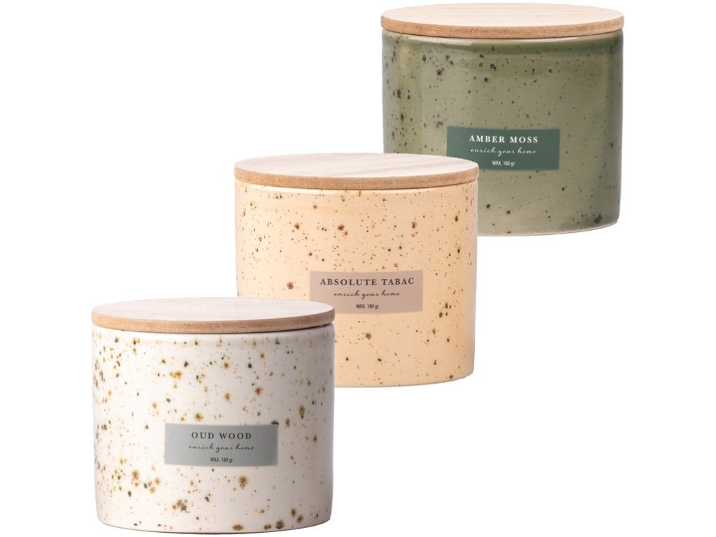 Vonná keramická sviečka s dreveným viečkom av mixe farieb, ideálna na vytvorenie príjemnej atmosféry. Skvelý darček pre každého, kto ocenia kvalitu a štýl. Jej rozmery sú 110x80mm.Dodatočné parametre