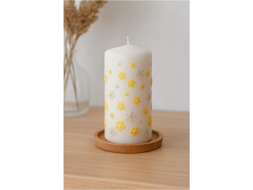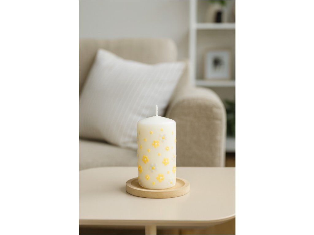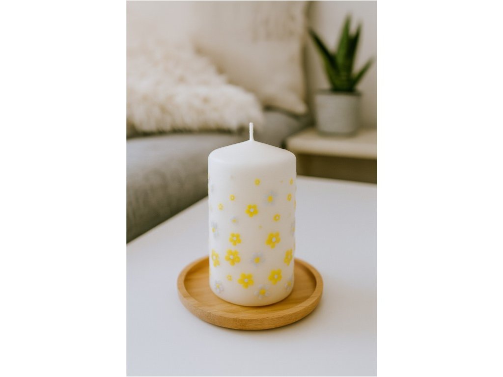 Sviečka valec aplikácie kvietky, 60x110 mm