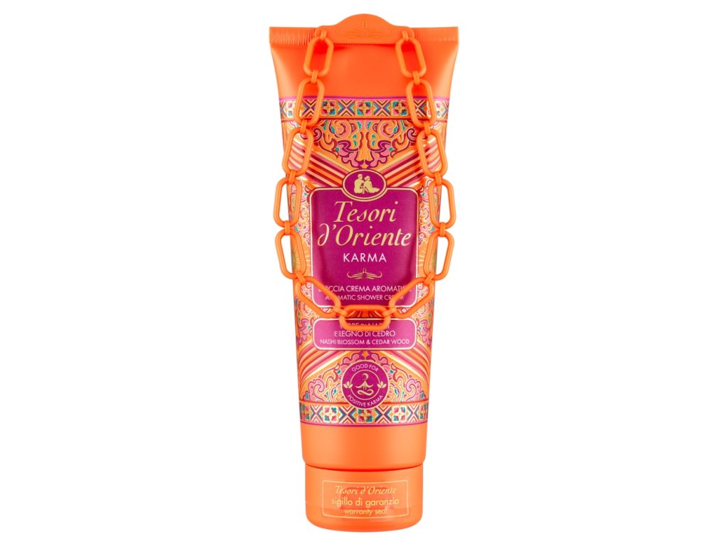 Tesori d´Oriente Karma je krémový sprchový gél inšpirovaný starovekými hinduistickými tradíciami. Energické akordy citróna a bergamotu, veselé kvetinové tóny kvetov nashi (čínska hruška) a upokojujúce tóny cédrového dreva harmonicky čistia pokožku a rozmaznávajú Vaše zmysly. Neobsahuje parabény, silikóny, minerálne oleje a umelé farbivá. Pomáha udržiavať optimálnu hydratačnú hladinu pokožky. Dermatologicky testované.
