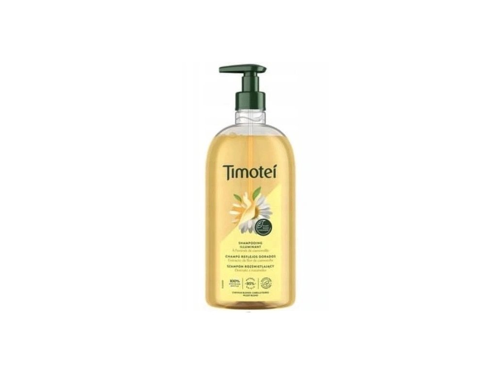 Šampón Timotei Golden Reflections je určený pre blond a odfarbené vlasy. Obsahuje prírodné výťažky a oleje, starostlivo skombinované s inovatívnou technológiou. Výťažok z kvetov harmančeka z úrodných maďarských lúk je už po stáročia známy tým, že prirodzene zosvetľuje vlasy a zvyšuje intenzitu farby. Vďaka flavonoidom, trieslovinám a organickým kyselinám harmančekový extrakt hydratuje pokožku hlavy a vlasy a zvyšuje ich prirodzený lesk. Harmanček navyše upokojuje podráždenie s protizápalovým účinkom na pokožku hlavy - zabraňuje svrbeniu a šupinateniu.