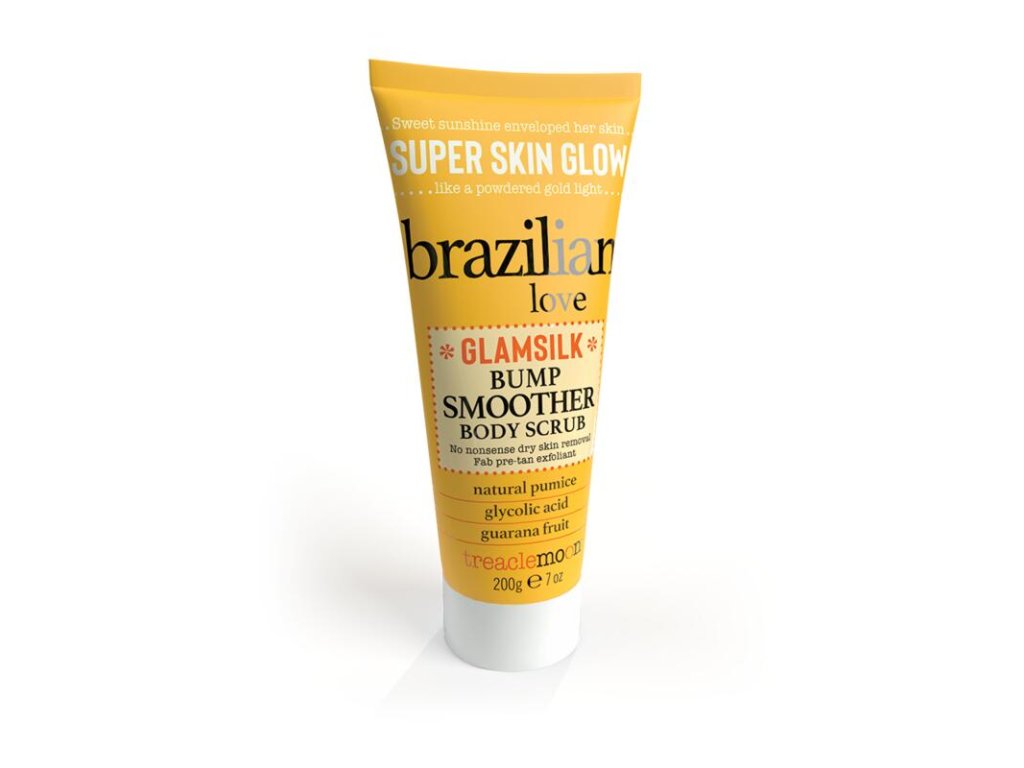 Telový peeling Treaclemoon Brazílsky Love Bump Smoother je telový peeling s objemom 225 ml, ktorý účinne odstraňuje suchú pokožku pomocou 100% prírodnej pemzy. Obsahuje kyselinu glykolovú a extrakt z guarany, je vegánsky a nebol testovaný na zvieratách.Dodatočné parametre