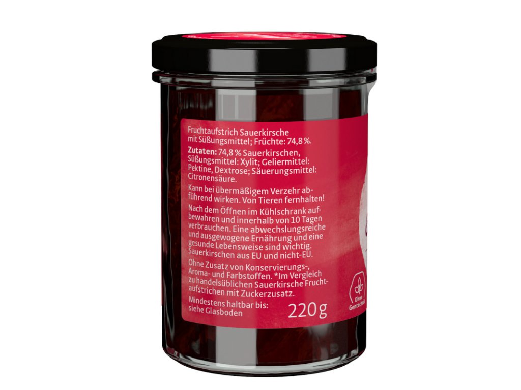 Višne (74,8 %), sladidlo: xylitol; želírovacie činidlá: pektín, dextróza, okysľovacie činidlo: kyselina citrónová.