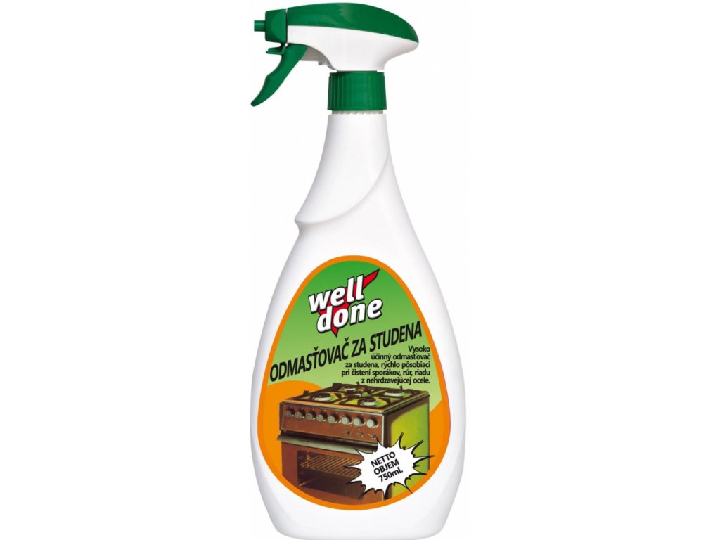 Nastriekajte alebo naneste odmasťovač na spálenú, mastnú, znečistenú plochu alebo na zvyšky spáleniny. Vyčkajte 2-3 minúty, zotrite vlhkou utierkou a potom umyte vodou. znečistených miestach postup zopakujte. Rozprašovač pred použitím otočte, po použití ho otočte späť.