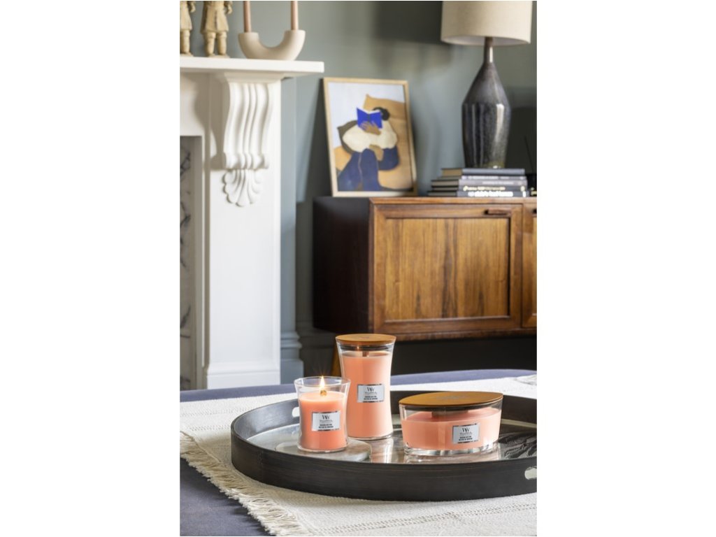 Elegantne tvarovaná stredná sviečka s typickým dreveným viečkom prevonia váš domov a naplní ho jemným zvukom praskajúceho knôtu, ktorý podporí atmosféru pohodlia a útulnosti. Lebo domov je tam, kde praská oheň. Knôt je vyrobený z prírodného dreva. TIP: Rozpustite sviečku vždy až ku kraju, nechajte jej horieť 3-4 hodiny Zloženie: zmes prémiového parafínu a sójového vosku s vysoko koncentrovanými vôňami zaisťuje čisté horenie bez nepríjemných zvyškov. Vonné esencie boli starostlivo vybrané, aby naplnili miestnosť dlhotrvajúcou vôňou. Otvorený tvar sviečky zvyšuje plochu odparovania vonných esencií z voskového jazierka a zaisťuje rovnomerný vonný zážitok. Patentovaný tvar dreveného knôtu Pluswick® Innovation vytvára ukľudňujúci zvuk praskajúceho ohňa. Rozmery 10 x 11 cm.Dodatočné parametre