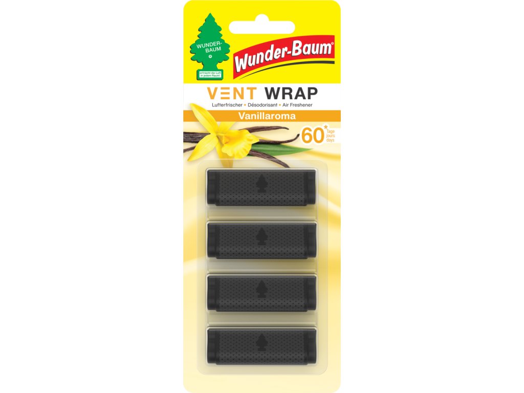 WUNDER-BAUM Vent Wrap diskrétny osviežovač vzduchu auta, ktorý svojim vzhľadom dokonale splynie s mriežkou ventilácie. Jedno balenie vydrží prevoňať vaše auto po dobu až 60 dní.Dodatočné parametre