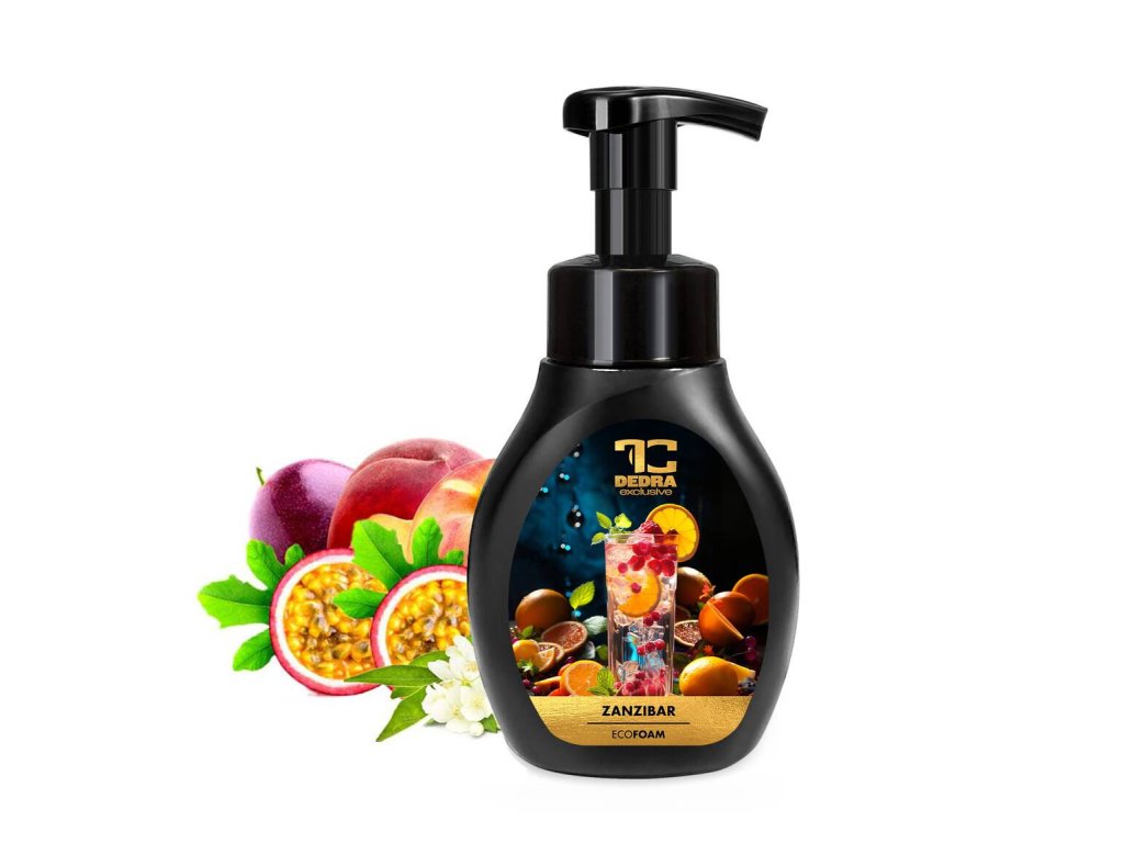 ZANZIBAR pena na ruky a telo prináša okamžitý, bohatý a hebký dotyk vďaka revolučnej penovej pumpičke, ktorá z jedného stlačenia vytvorí jemnú, voňavú penu. Vydržia až 3× dlhšie ako bežné mydlá a šetria tak nielen peniaze, ale aj životné prostredie. Obsahuje extrakt z Aloe Vera, ktorý pokožku zvláčňuje, hydratuje a chráni. Parfumácia ZANZIBAR je zmyselnou cestou do exotických diaľav – v úvode ťa privíta šťavnatá broskyňa, citrón a svieže jablká, srdce vône rozžiari passion fruit, ruže a jazmín a základ zanechá dlhotrvajúci hrejivý dojem santalového dreva, vanilkového lusku a pačule. Benefity Okamžitá pena – nie je potrebné vodu napeniť, stačí jeden stisk. Až 3× dlhšia výdrž ako bežné mydlá na ruke. Obsahuje Aloe Vera pre jemnú a hydratovanú pokožku. Ekologický prístup – menší obal, menej plastu, menej odpadu. Vyrobené v ČR našimi špecialistami s tradíciou od roku 1995. Nikdy netestované na zvieratách - šetrná k tebe i prírode.Dodatočné parametre