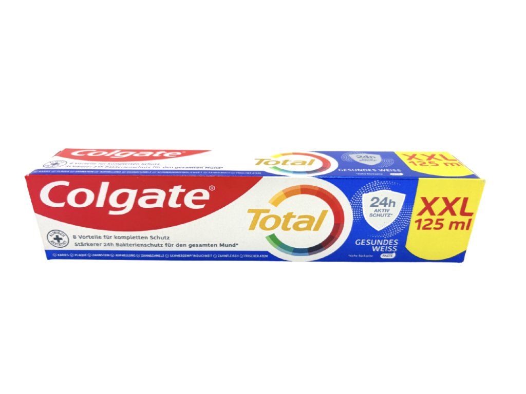 - Vysoko hodnotený bieliaci variant radu Colgate Total s objemom 125 ml – skvelá dlhodobá voľba.